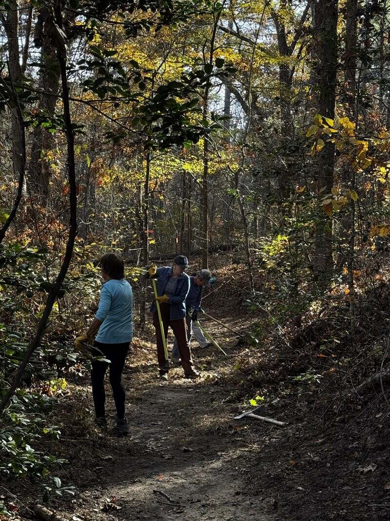 This year’s Volunteer Vacation at Natchez Trace State Park brought together 16 volunteers who spent the week learning new skills, giving back, and exploring one of Tennessee’s most peaceful forest landscapes. Each morning, the crew headed toward Cub Creek Lake, a 58-acre CCC-built lake, to work on rerouting a section of the Red Leaves Backpacking Trail. With guidance from park rangers, volunteers practiced sustainable trail design and built confidence using tools like Pulaskis and McLeods on short hikes to the work site.