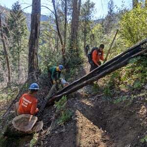 Each morning, we’ll work upstream on a remote trail that needs hands and care—removing downed logs, restoring tread, and reopening passage through a landscape shaped by time, fire, and water. The work is physical, purposeful, and deeply rewarding, carried out in partnership with the Klamath National Forest as part of the long-term stewardship of the Bigfoot Trail corridor.
