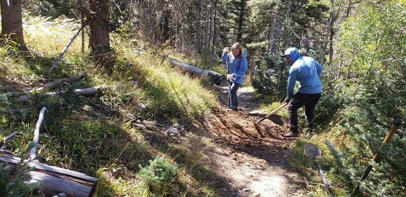 The project will focus on repairing sections of the Lost Lake Trail near and below tree line that have been hit hard by recent storms and deferred maintenance. Each day will begins with a short hike (1/4 to 1.5 miles) to the work zone. The primary task is tread re-benching: using hand tools to cut trail back into the hillside. Additional projects will include light rock work to support rebuilt sections and install drainage features such as rolling grade dips to shed water and prevent erosion. Expect physically demanding days at high altitude in variable mountain weather. No prior trail-work experience is required—our crew leader will provide all training, tools, and supervision.